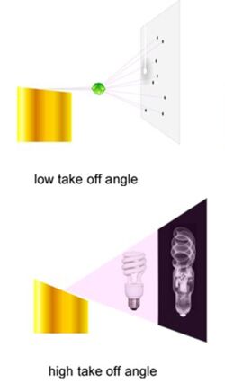 Over the past few years, Incoatec’s IXT team has subsequently explored and optimized several parameters critical to the performance of the source in X-ray diffraction applications, such as the take-off angle, e-beam focusing and filament shape. In a typical NDT tube operated in reflection mode, usually the footprint of the electron beam is very small, and the take-off angle is rather large (typically in the range of 20 to 50°, sometimes even larger), giving a large field of view required for radiography of larger objects.