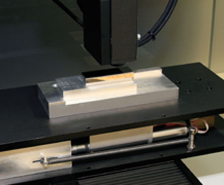 For synchrotron applications, we use perfectly shaped prefigured substrates with ultra-low roughness. For most of the optics for lab-instrumentation, the manufacturing process includes the preparation of substrates by bending silicon wafers into a predetermined shape using dedicated bending tools. The quality of the shape of each substrate is controlled by optical profilometry methods measusuring the peak-to-valley deviation which quantifies the figure error, i.e. fit of the bent substrate to the theoretical shape of the specific mirror design. This deviation in height onto the substrate must be within several hundreds of nanometers.