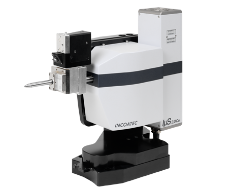 The IµS provides a highly brilliant X-ray beam in a power range of 10-50 W. It reaches an superb performance by using an air-cooled microfocus sealed tube which has a focal spot of the electron beam on the anode of about 20-50 µm in diameter. Incoatec offers all typical anode materials, such as Cu, Mo, Ag and Cr.